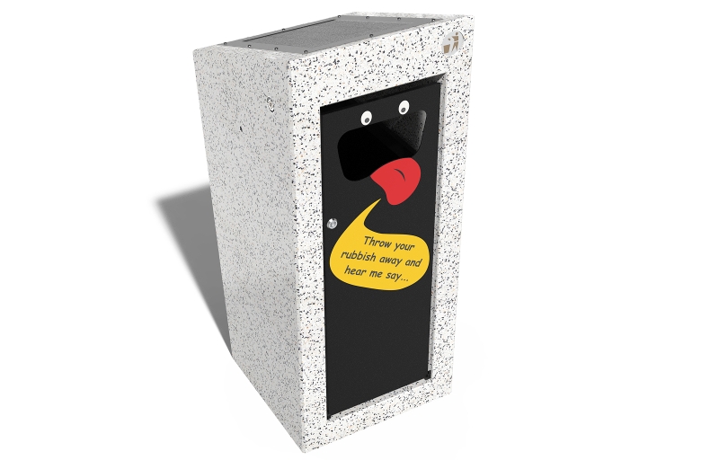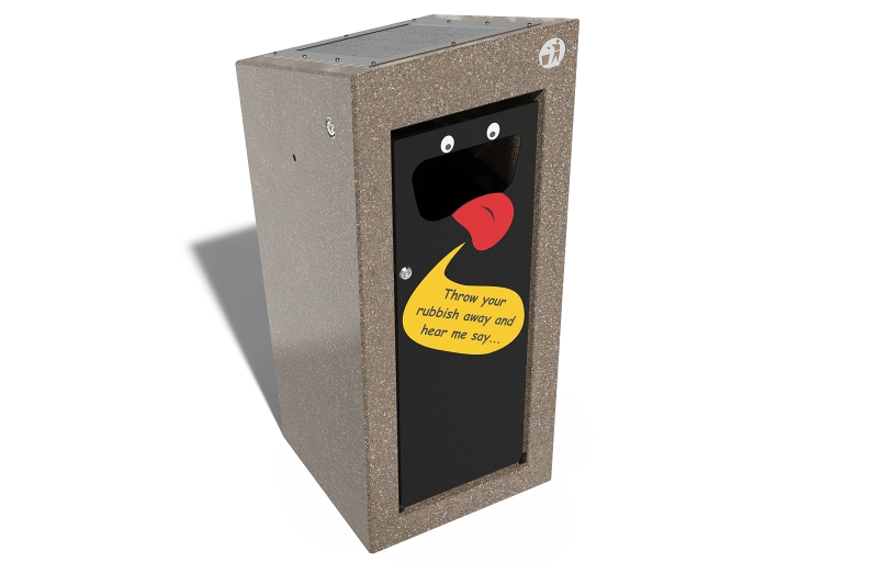 Ausgestattet mit einem Bewegungssensor und einem Sprachgerät reagiert der Mülleimer, wenn Abfall entsorgt wird, indem er personalisierte Sätze oder voreingestellte Nachrichten wiedergibt. Diese Funktion soll die Menschen auf unterhaltsame Weise dazu motivieren, Abfälle an den richtigen Stellen zu entsorgen und so zur Erhaltung der Umwelt für künftige Generationen beizutragen.