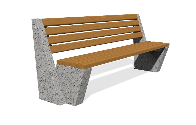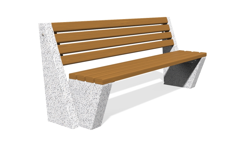 Die Bank besteht aus hochfestem Stahlfaserbeton und natürlichem Mosaik. Die Mosaikstruktur bietet eine Möglichkeit für verschiedene Farbkombinationen und besteht aus natürlichen Marmor - oder Granitsteinen. Der Sitzbereich ist speziell gestaltet und lässt keine Wassereinlagerungen unter den Holzelementen zu. Alle Betonoberflächen sind poliert und zusätzlich mit Lack behandelt und dies macht das Produkt noch widerstandsfähiger gegen aggressive Wetterbedingungen.