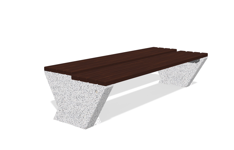 Die Bank besteht aus hochfestem Stahlfaserbeton und natürlichem Mosaik. Die Mosaikstruktur bietet eine Möglichkeit für verschiedene Farbkombinationen und besteht aus natürlichen Marmor - oder Granitsteinen. Der Sitzbereich ist speziell gestaltet und lässt keine Wassereinlagerungen unter den Holzelementen zu. Alle Betonoberflächen sind poliert und zusätzlich mit Lack behandelt und dies macht das Produkt noch widerstandsfähiger gegen aggressive Wetterbedingungen.