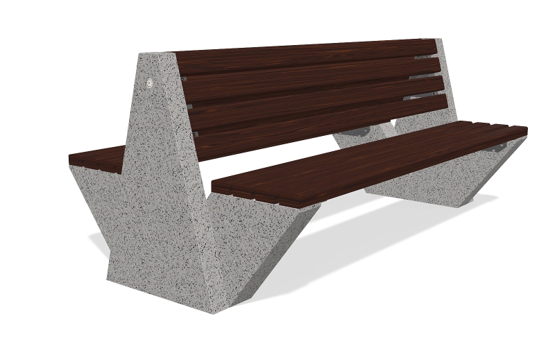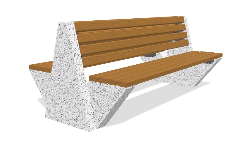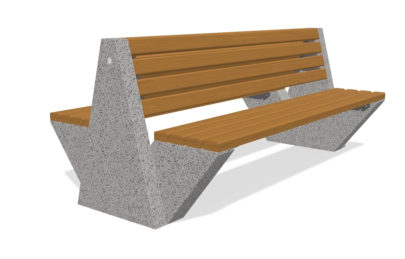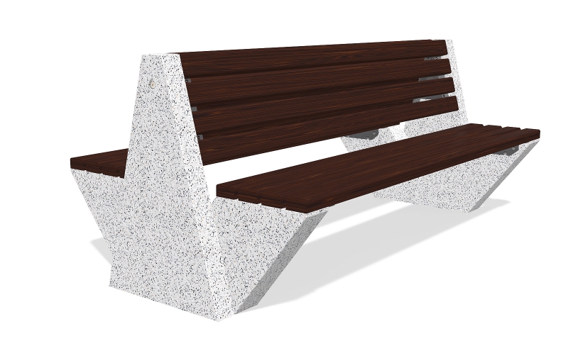Die Bank besteht aus hochfestem Stahlfaserbeton und natürlichem Mosaik. Die Mosaikstruktur bietet eine Möglichkeit für verschiedene Farbkombinationen und besteht aus natürlichen Marmor - oder Granitsteinen. Der Sitzbereich ist speziell gestaltet und lässt keine Wassereinlagerungen unter den Holzelementen zu. Alle Betonoberflächen sind poliert und zusätzlich mit Lack behandelt und dies macht das Produkt noch widerstandsfähiger gegen aggressive Wetterbedingungen.