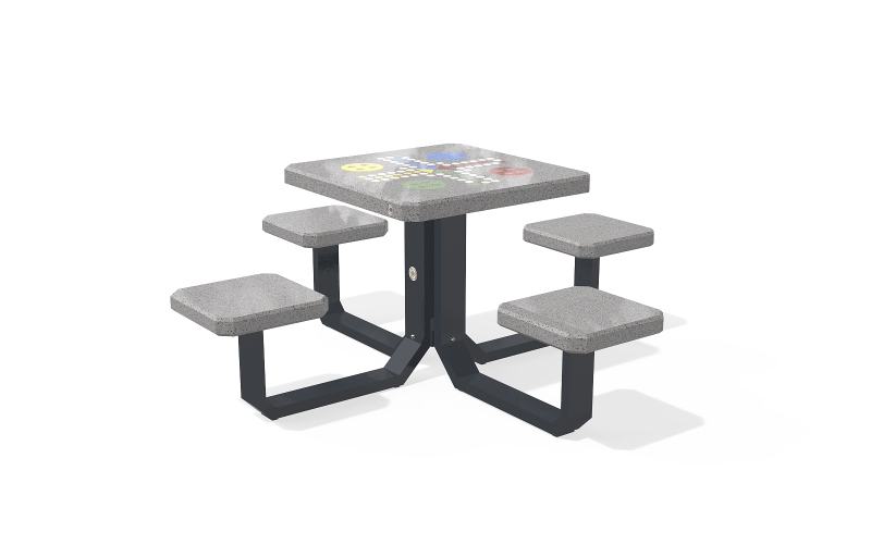 Eine praktische Ergänzung für verschiedene städtische Gebiete - Parks, Parkgassen, Schulen, Spielplätze und andere öffentliche Räume. Es sind verschiedenste Kombinationsmöglichkeiten gegeben durch die verschiedenen Farbvarianten der Betontischplatte, der Metalltischbeine und der Holzsitzplatten.